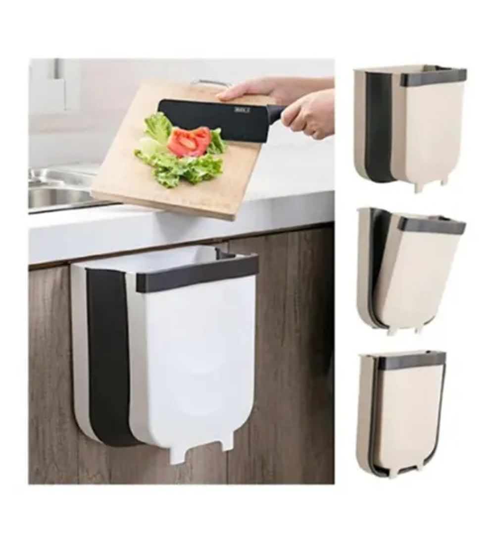 puede soportar más de 8 kg de peso. El cubo de basura plegable se cuelga sobre la puerta del armario de cocina, puedes tirar la basura con precisión y rapidez en la papelera cuando cortas verduras, no necesita agacharse para tirar basura