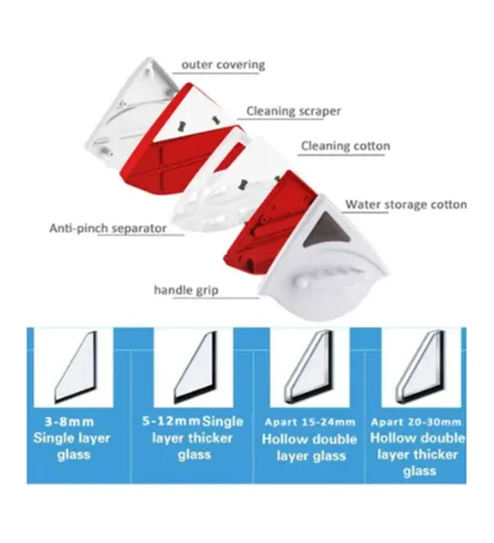Fácil de limpiar. Limpia el exterior de tus ventanas, mientras te quedas en tu habitación. Fuerte fuerza de absorción. Eficaz para ventanas con un solo acristalamiento de 3-8 mm de grosor. respetuoso con el medio ambiente Material plástico de alta calidad, práctico, sólido, anticaídas y duradero. El diseño triangular puede limpiar fácilmente las esquinas. La distribución del diseño magnético es fácil de fregar. Diseño único. Diseño de doble cara, fuerte magnético, es muy seguro y práctico.